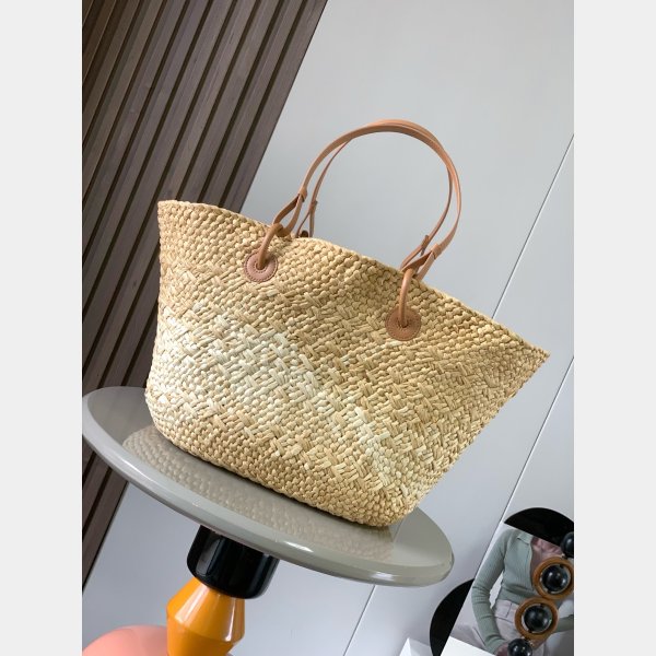 Perfect loewe Anagram Basket bag in iraca palm and calfskin 8008