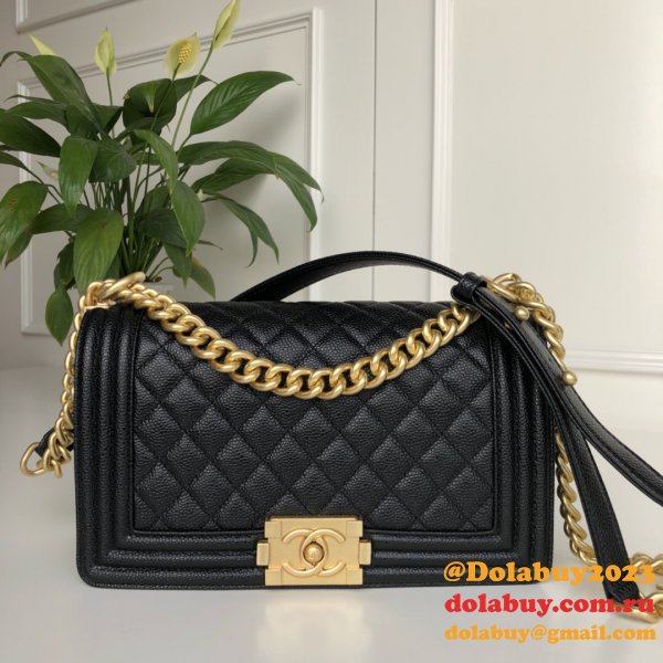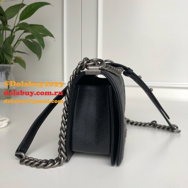 AAA+ CC Le Boy Luxury Replica Black Bags Caviar 25cm