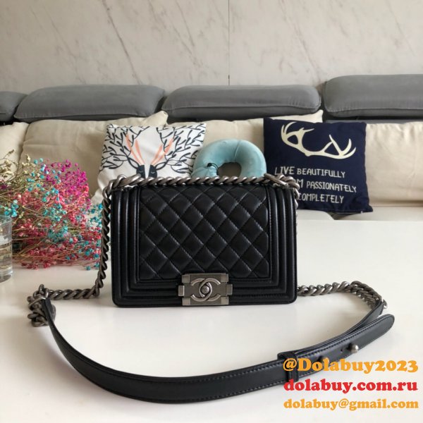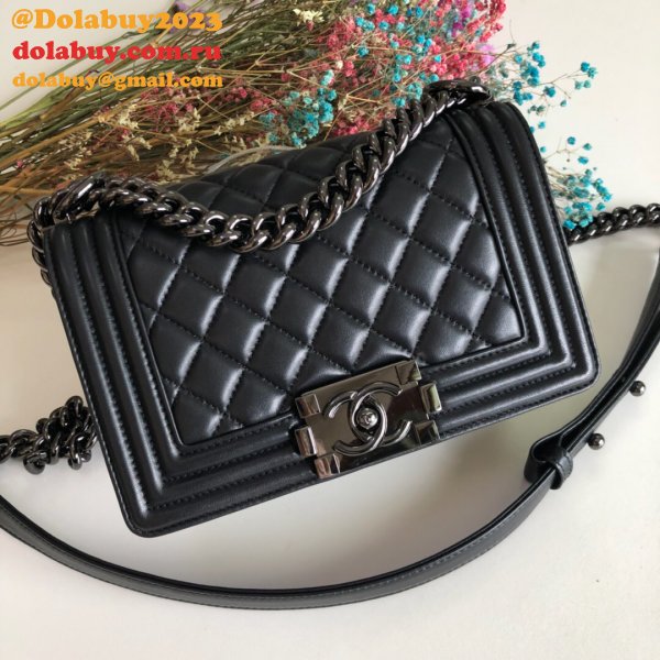 High Quality CC Le Boy Replica Best Black Bags lambksin 20cm