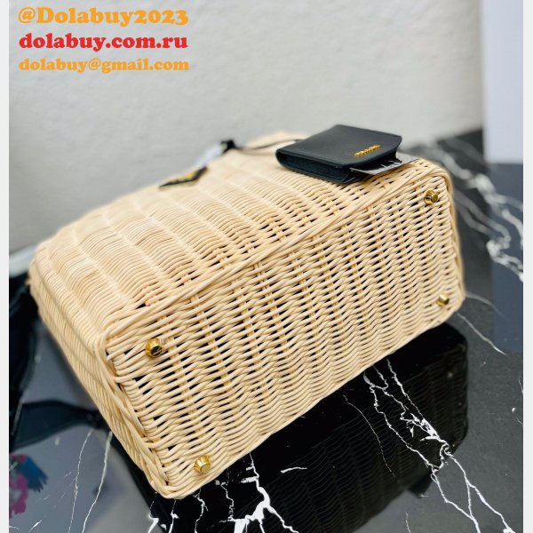 Top Quality Best prada Wicker and canvas tote bag